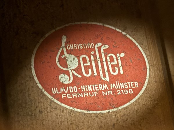 ChatGPT says “That label is from Christian Reisser, a violin and double bass maker (Geigenbauer) based in Ulm, Germany, active roughly early- to mid-20th century. The phrase “ULM/DO: HINTERM MÜNSTER” means “Ulm/Donau: behind the cathedral,” describing his workshop’s location. “FERNRUF NR. 2198” is an old-style telephone number, placing it pre-1950s. Reisser of Ulm appears in Geigenbauers Lexikon (Jalovec, 1958) and in several German violin maker registries listing him as active around 1920–1950. If original and intact, a Christian Reisser double bass could have collector or player value, typically £2,000–£6,000 depending on condition and tone quality.