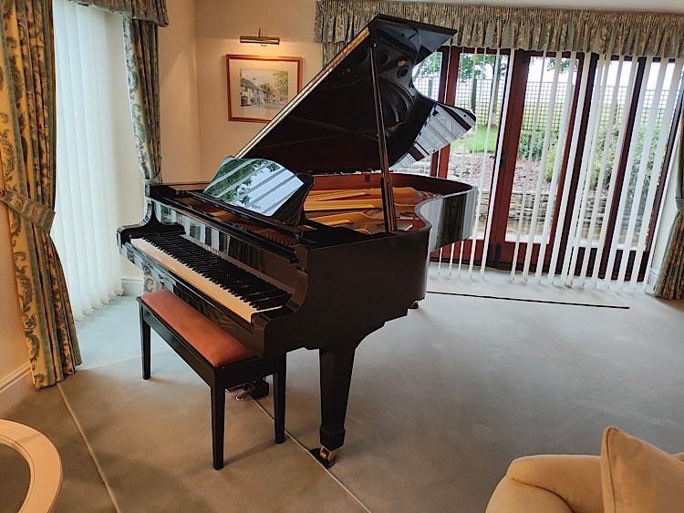 “Dawsons’ explained that the piano was originally purchased brand new as a retirement gift (to himself) by the Headmaster of an independent secondary school in Altrincham, subsequent to many months of auditioning several much more expensive instruments. It was a downsizing of his home some years later which dictated a part exchange back to Dawsons. We purchased the piano in 1995 from Dawsons’ Music who at the time had a shop in Altrincham. As the piano was far too large to display in their shop, it was agreed to purchase on the basis that the piano would be auditioned in my home and returned to Dawsons in the event that it fell short of my expectations. It did not. With our children now having grown up and left home, we are now downsizing ourselves and it is a significant regret that it has been decided that the piano will not come with us. I can honestly say that the ownership of the piano has given me possibly the most pleasure and satisfaction of any possession I have acquired. The piano has been tuned on an annual basis ( covid excepting ) by Stephen Greenhalgh. It is my understanding that he has tuned the piano from brand new for the original owner and myself.”